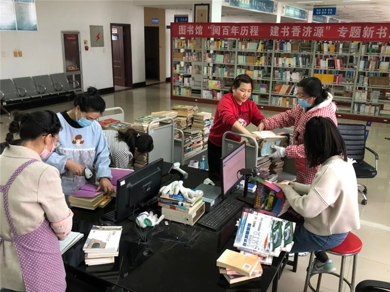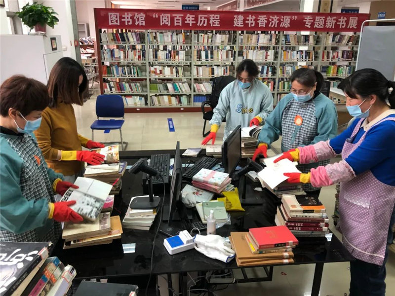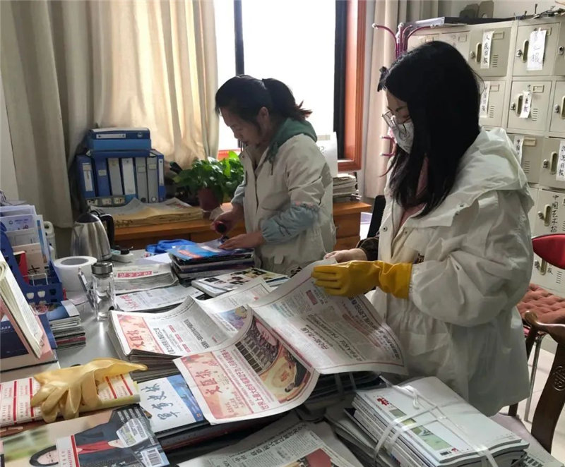虽然闭馆了,图书馆的工作人员们依然坚守岗位,