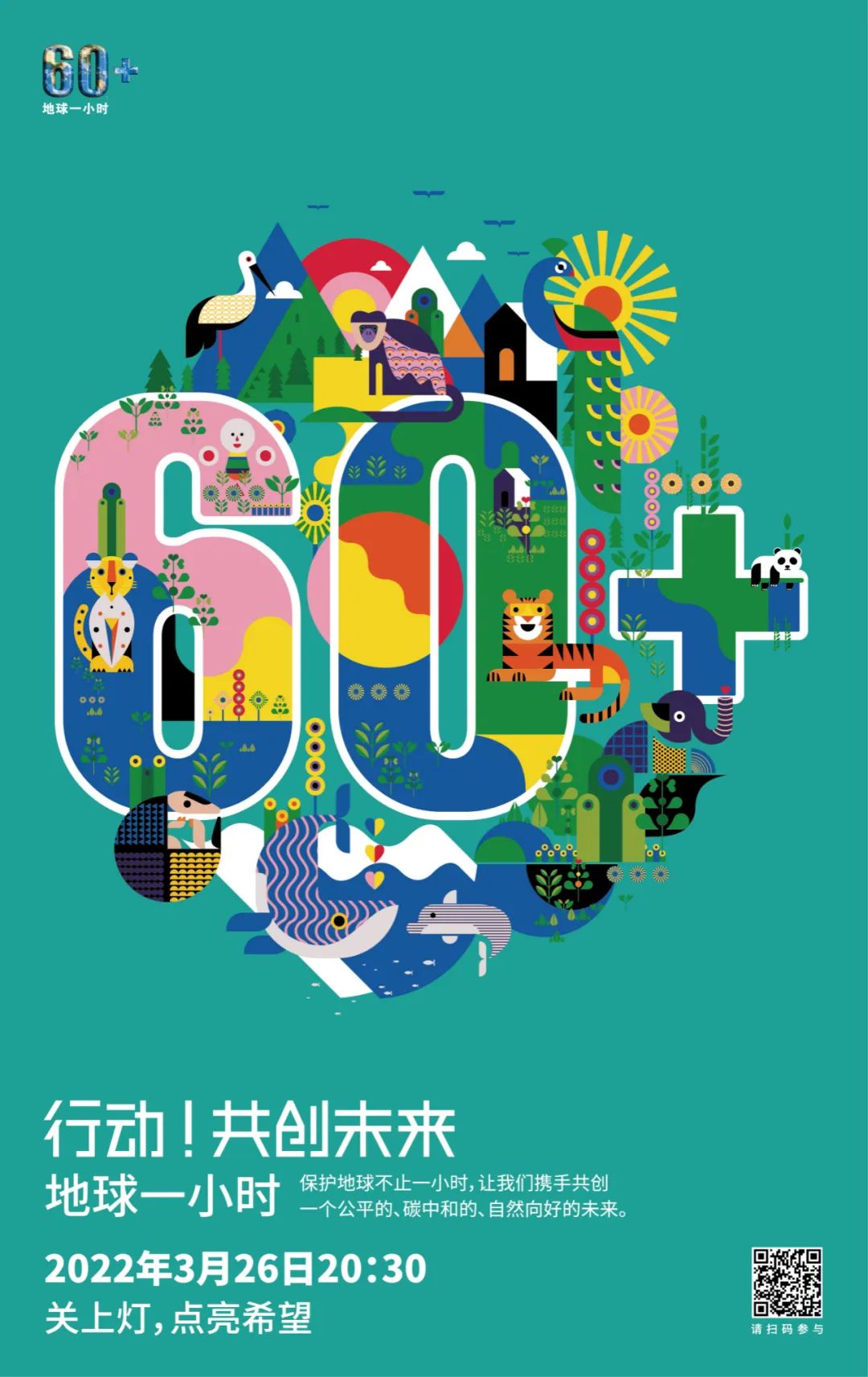 “地球一小时”全球口号:关上灯,点亮希望,号召大家行动起来,共创一个与自然和谐的美好未来。