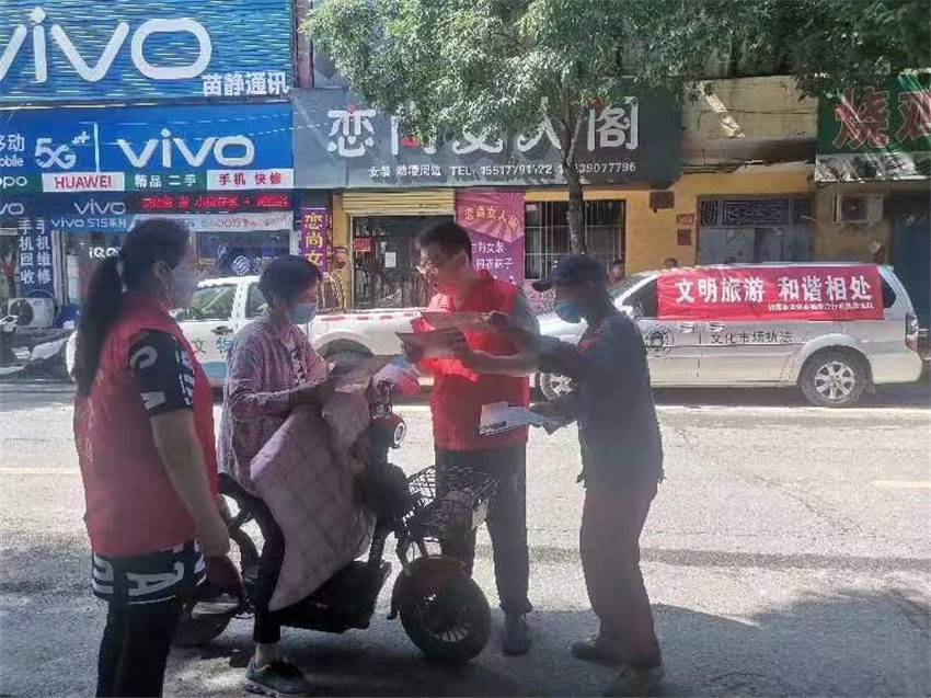 一是广泛开展法规宣传活动。执法支队通过现场讲解、发放宣传页、执法车辆巡回提示等方式,提高旅游经营者、旅游者的法治意识,引导旅游者树立文明旅游意识,严厉打击旅游领域养老诈骗行为。
