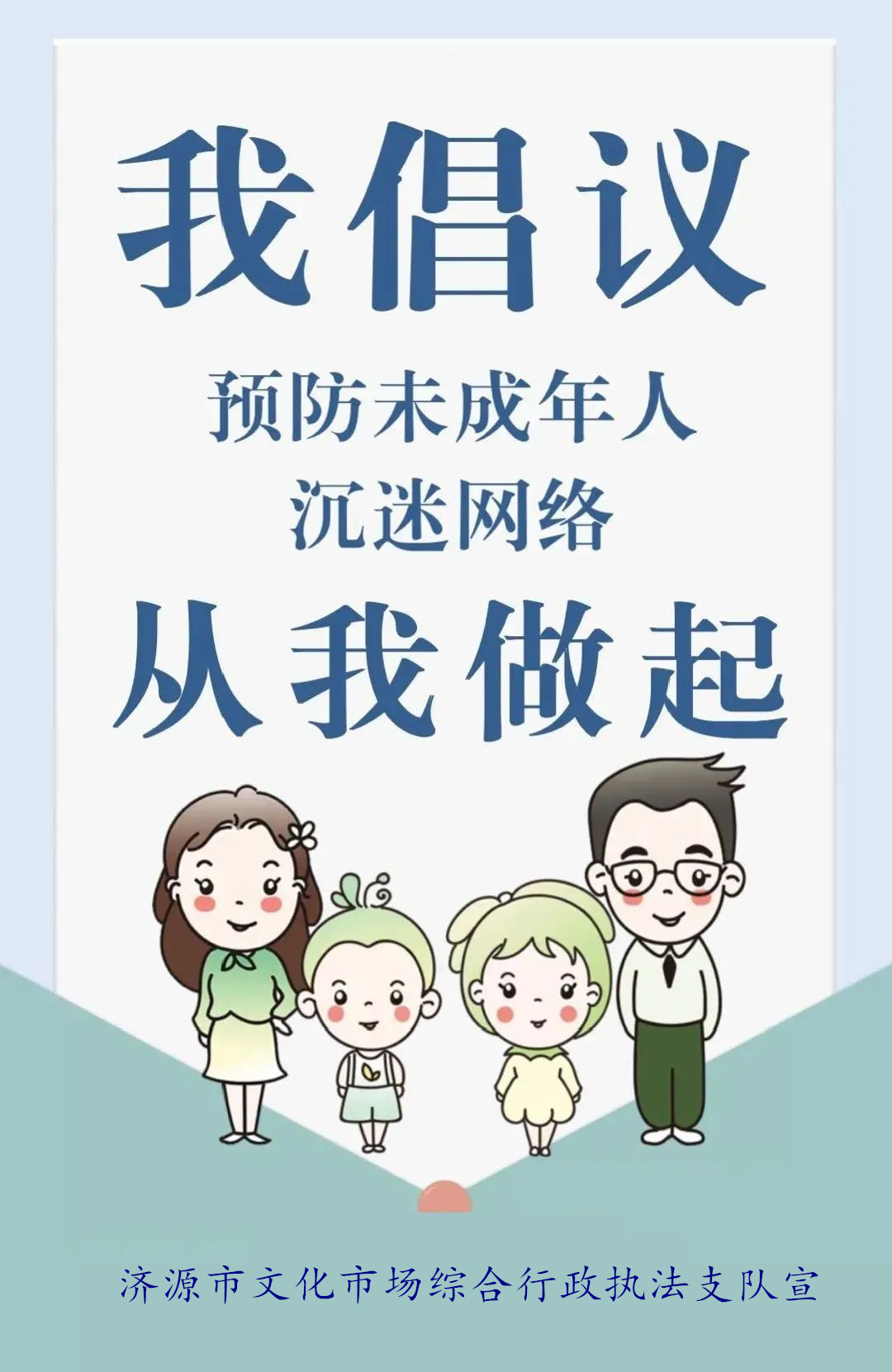 为引导未成年人正确使用互联网,避免沉迷网络,杜绝不良信息及网络社交侵害,济源文化广电和旅游局现面向大家发出倡议,我行动,我接力,预防未成年人沉迷网络,从当下做起,从自身做起。携手共建清朗的网络文化环境,养成良好的生活方式、行为方式,不在眼花缭乱的虚拟世界中迷失自己,不在虚无的网络中耗费宝贵的时光,
