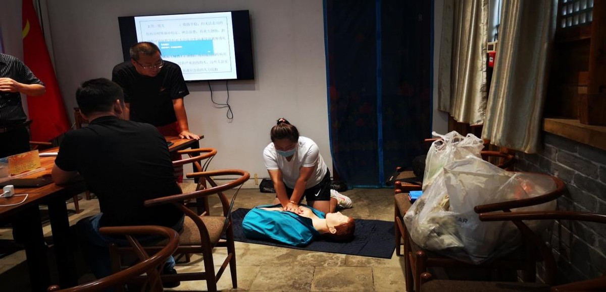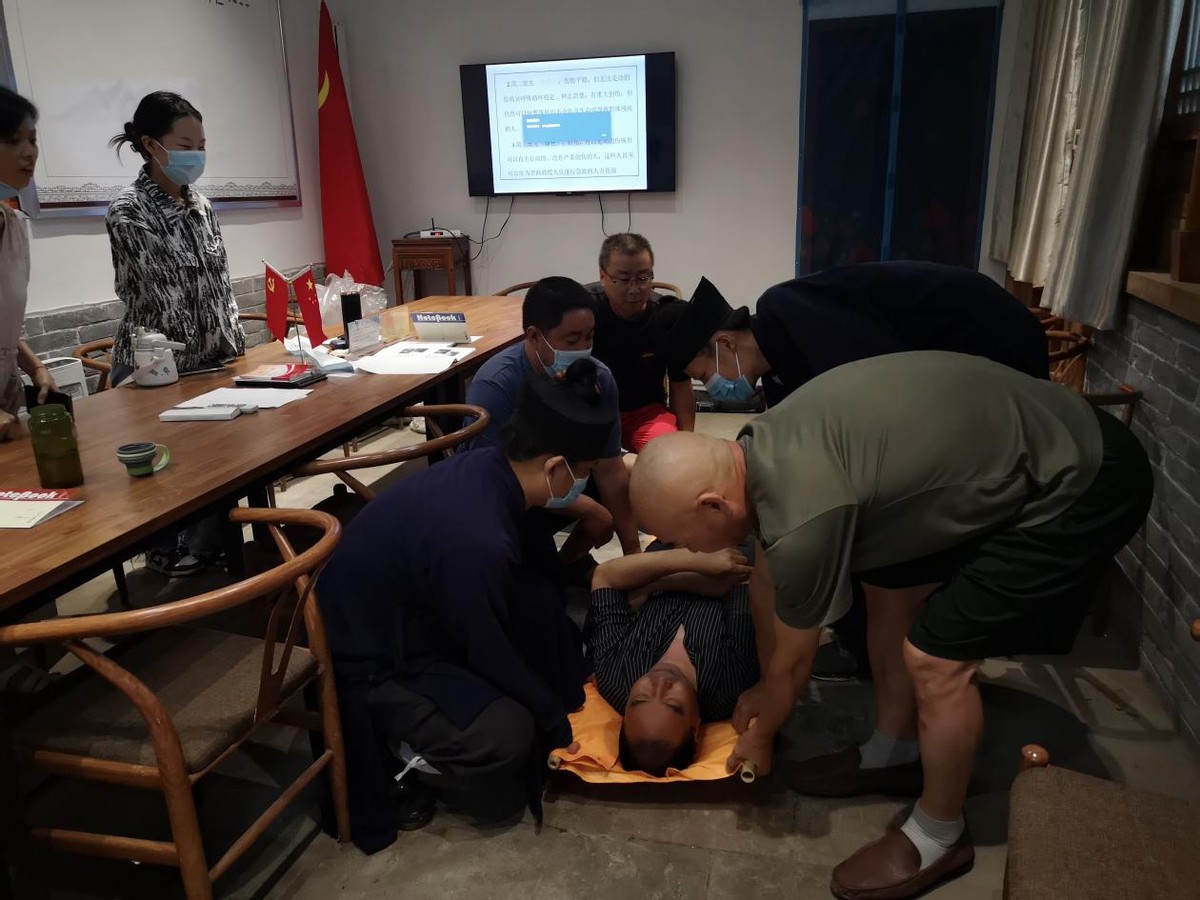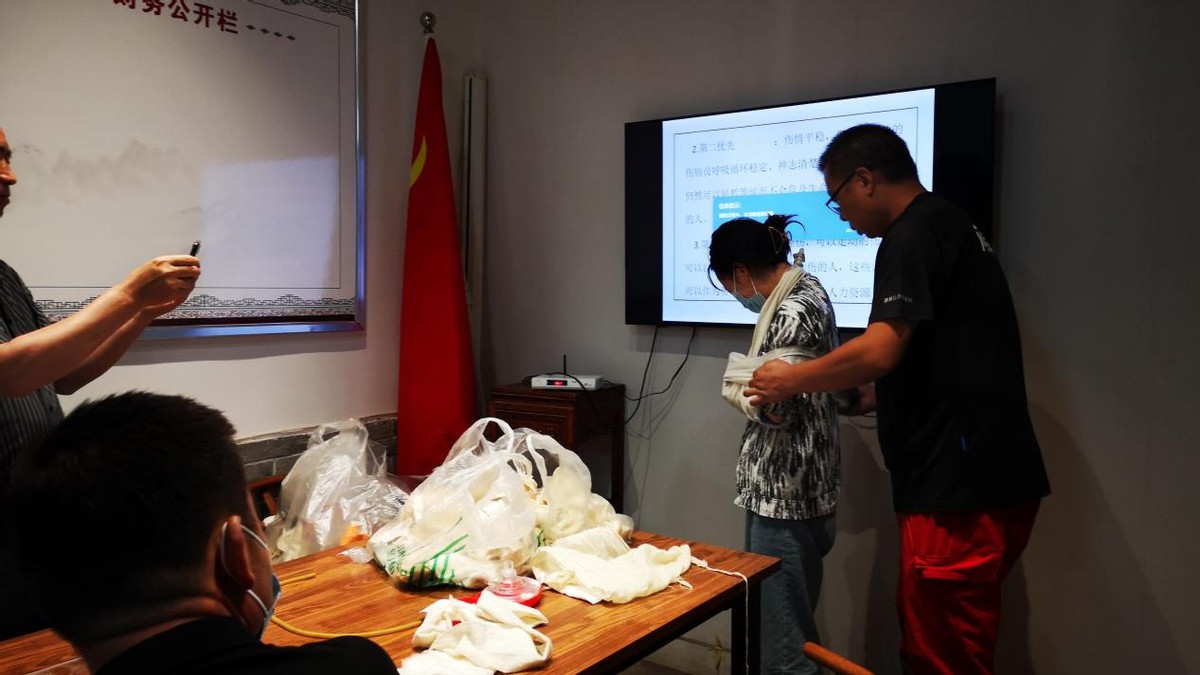 本次培训以案例解析、医疗急救、现场指挥调度、水域救援等为主要内容。吕涛会长首先带领大家观看了山洪暴发、溺水、城市内涝触电、儿童游乐设施失控等各类安全事故案例视频,并逐一对事故案例做了风险隐患、应急处置等方面的解析。随后为大家做了《第一现场人急救技能培训》的专题培训,为大家详细讲解了应急救援第一现场中救护的特点与原则、现场风险评估、伤员的检伤分类以及救护步骤。下午又手把手地带领大家进行了心肺复苏术、人工呼吸法、不同受伤情况下绷带和纱布的包扎方法等紧急救护技术的实操演练;详细讲解了溺水事故的多种救援方法和注意事项,教大家自制抛绳器、简易溺水施救工具、简易担架、户外救援绳结系法等多种应急救援常识、技巧。