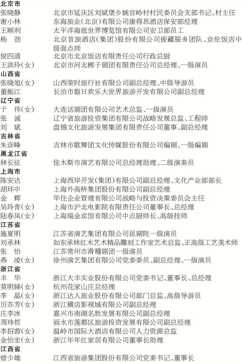 全国文化和旅游系统劳动模范拟表彰对象名单(共计95人)